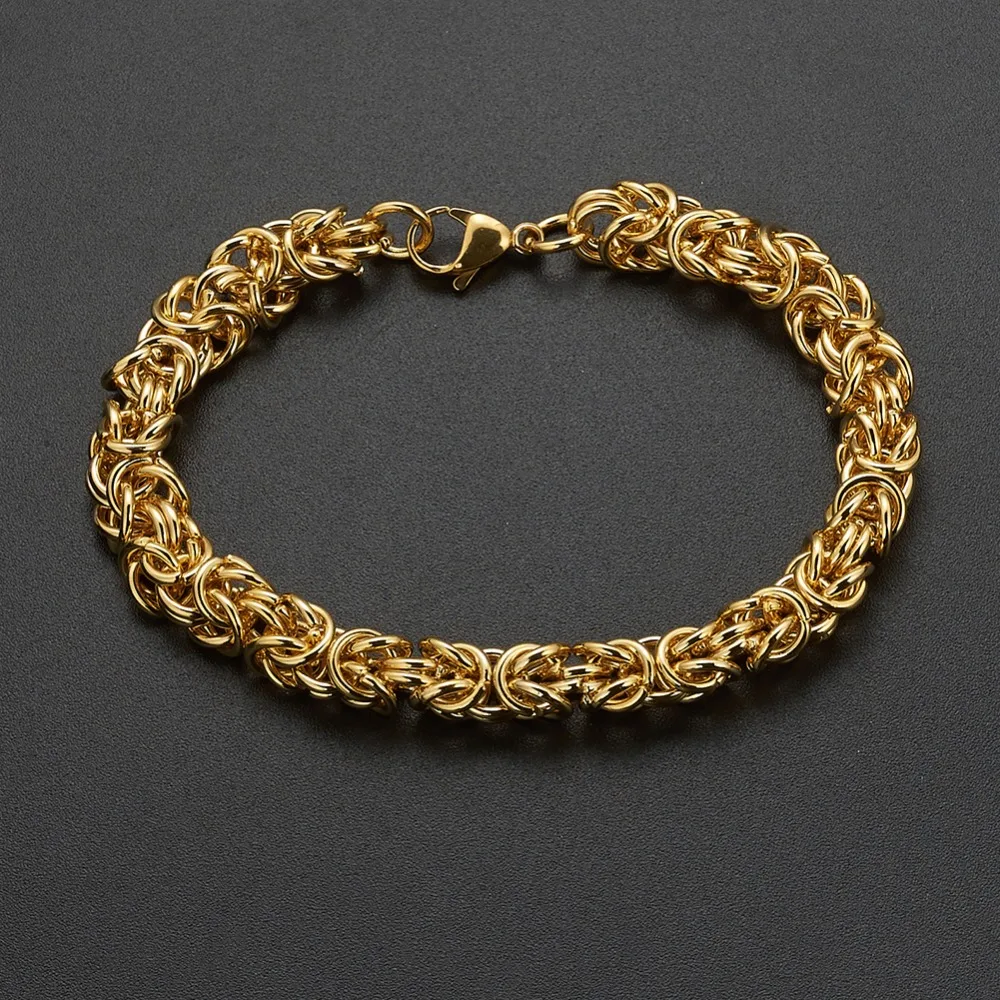 ✨ 6/8/10mm Stainless Steel Gold Byzantine Link Chain Bracelet – Unisex Style ✨