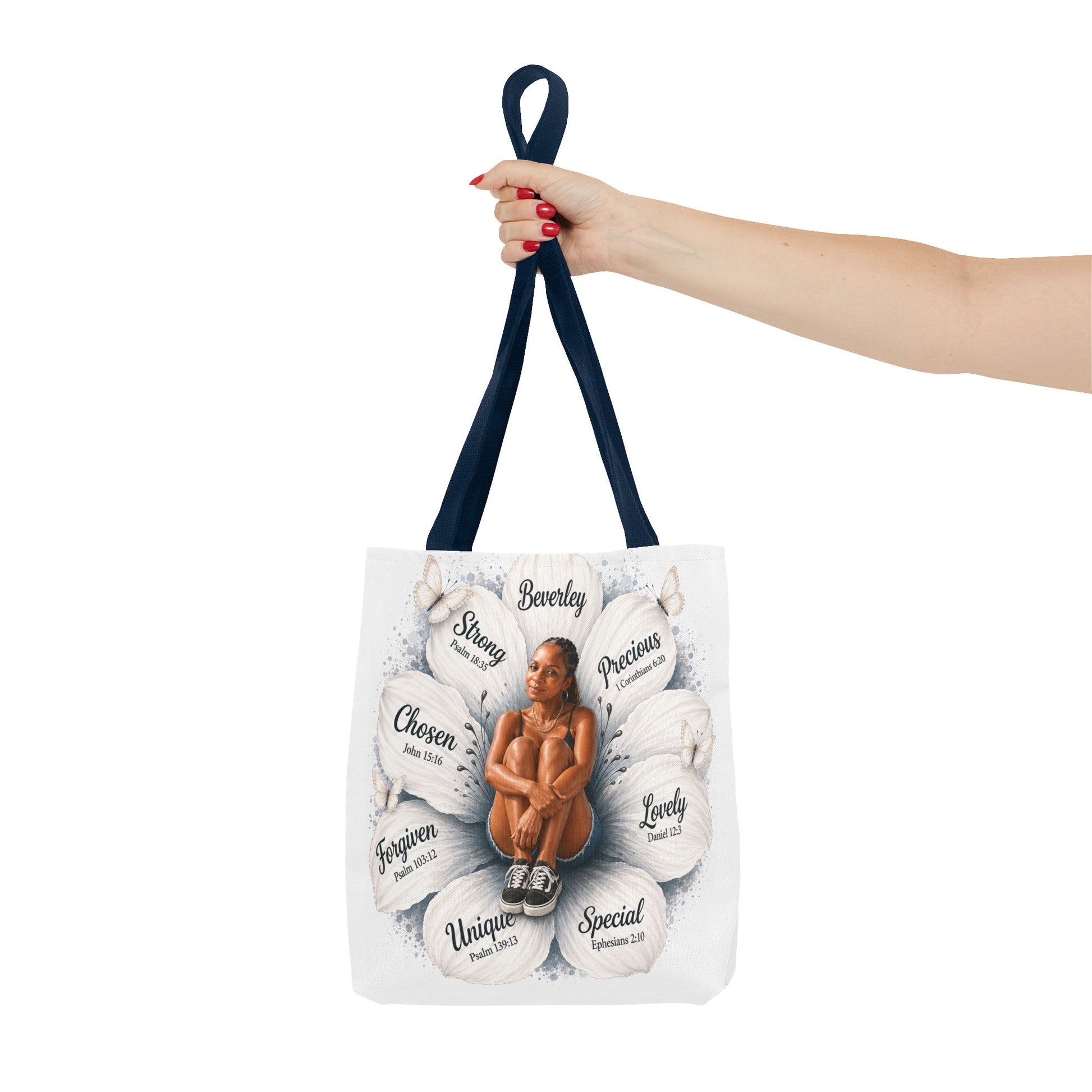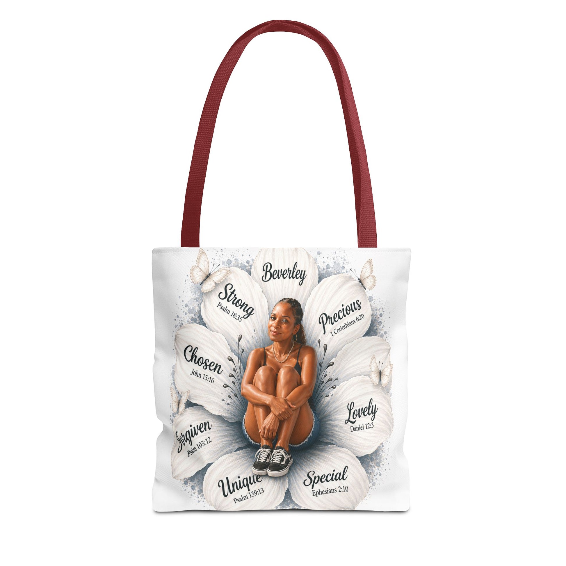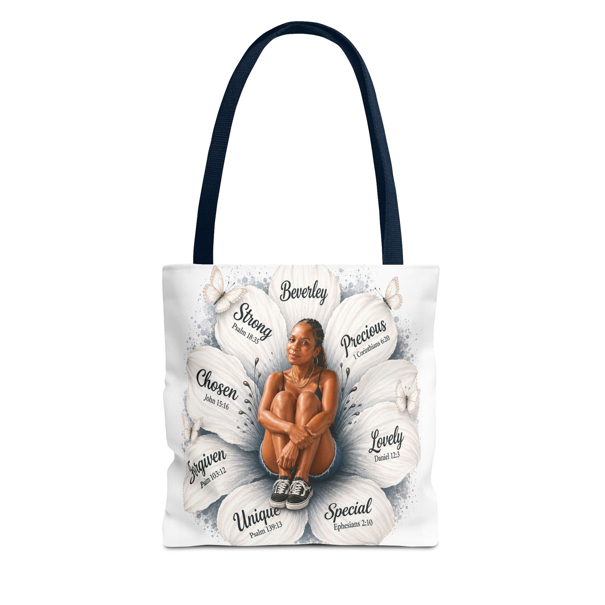 Affirmation Floral Tote Bag — 'Your likeness and name Chosen, inspirational affirmations
