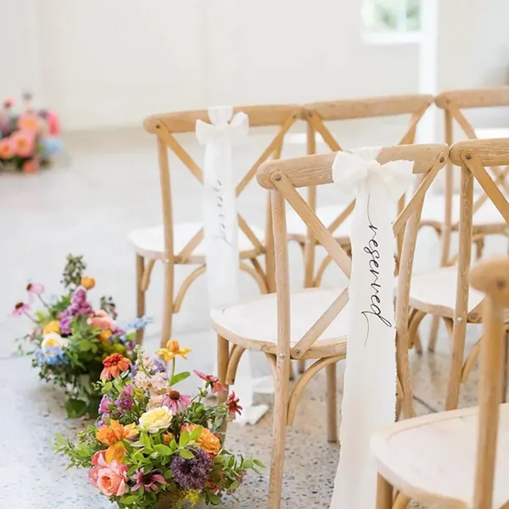 🪶 High-Quality Satin Ribbon – smooth, durable, and tied beautifully around any chair