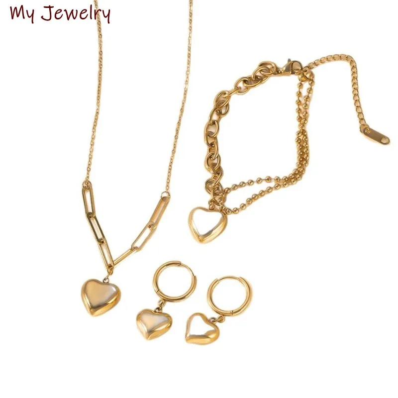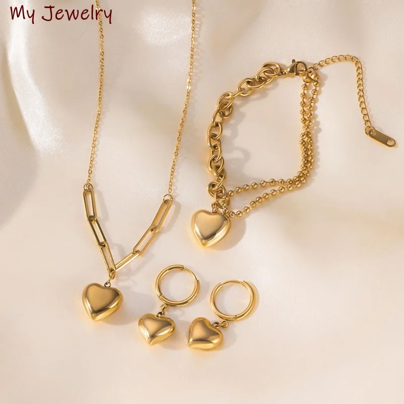 3-Piece Set: bracelet, love-inspired earrings & heart pendant necklace