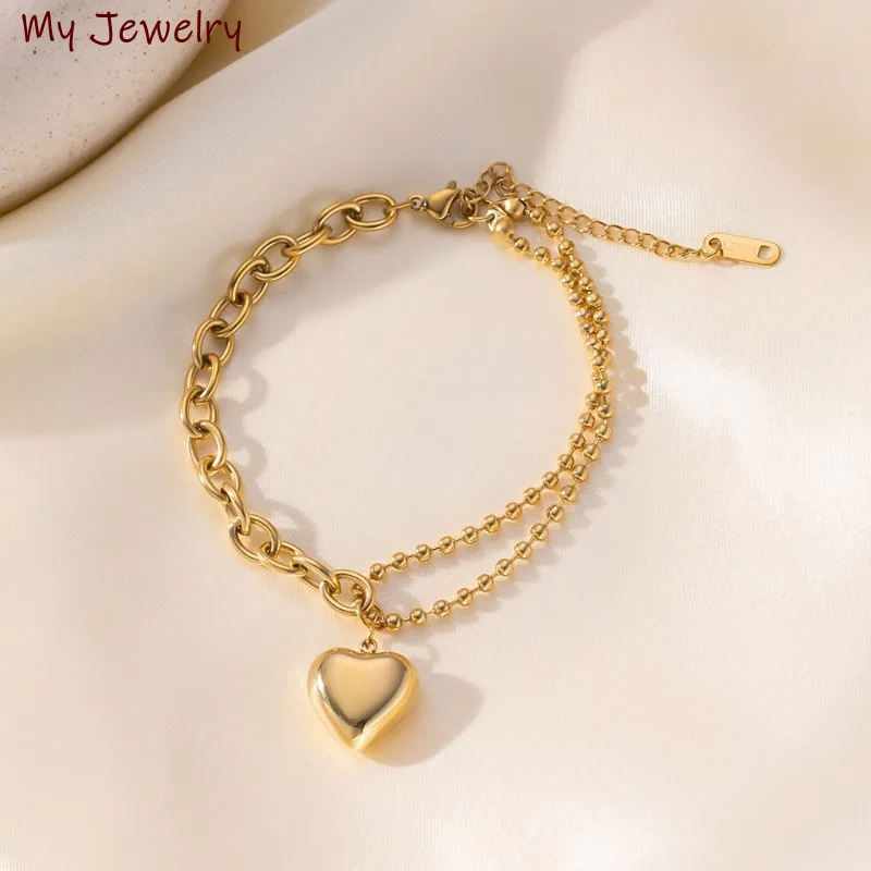 Elegant Simple Bracelet Love Earrings Heart-shaped Pendant Necklace Women's Set