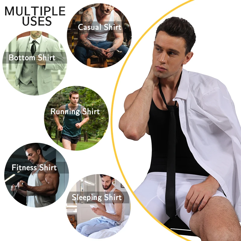 · 🔥 FAT BURNING ASSISTANT 🔥 -- Our tank shirt is specifically designed to reduce the appearance of Gynecomastia ,hide "man boobs",deal with "beer belly".Breathable for improving blood circulation and fat burning, and strongly chest shaping while workout or gym.