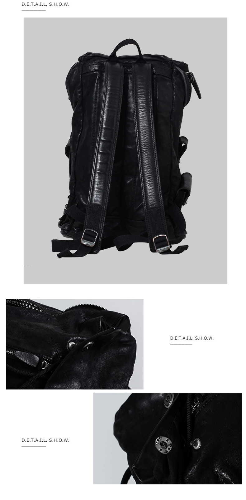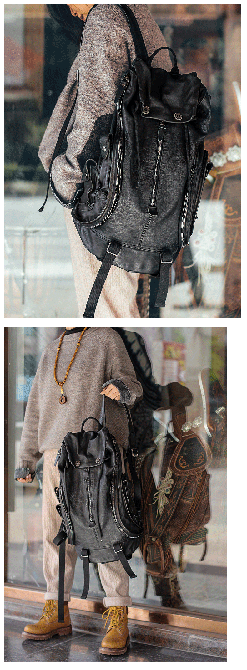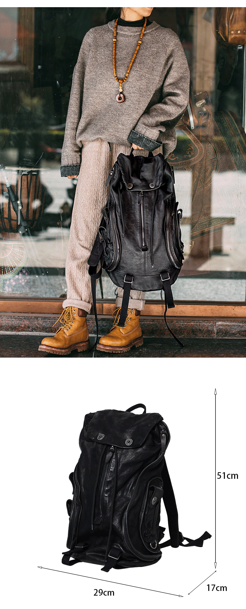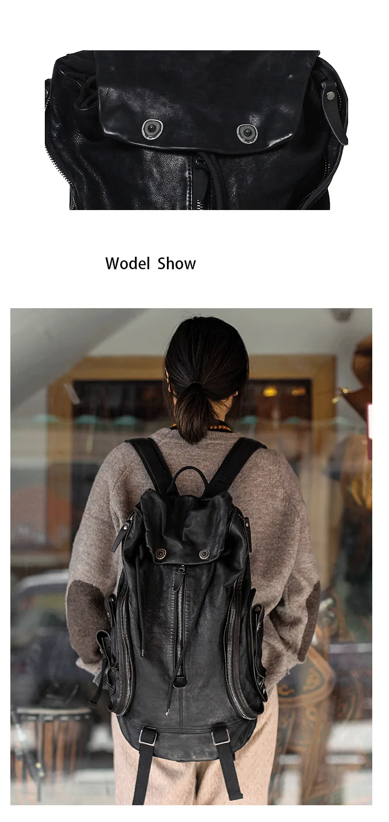 Men's Backpack Zipper Retro Old Leather Shoulder School Bag Mobile Phone Bag Fashion Dark Wind Soft Youth Black Travel Backpacks