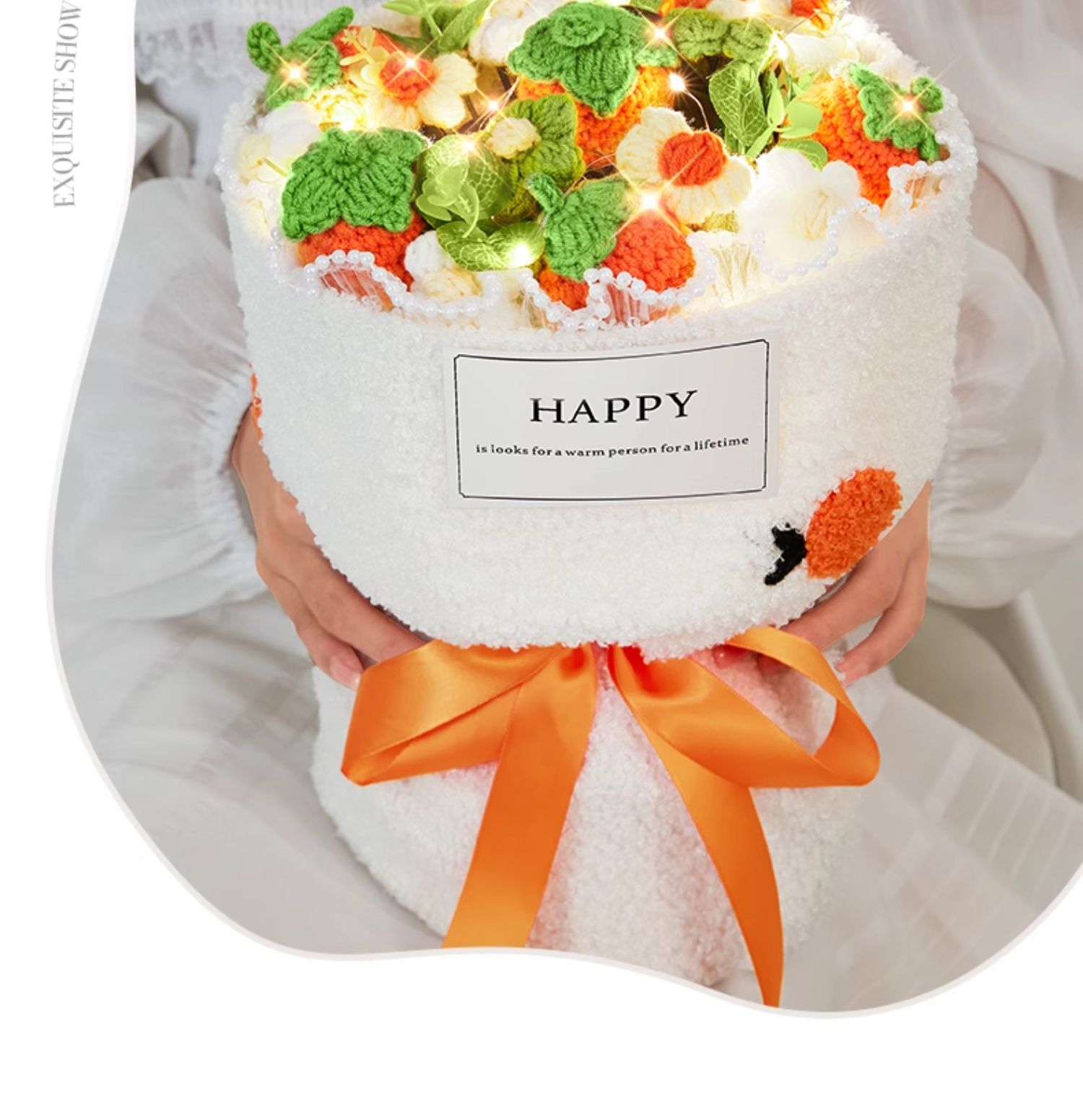 Knitting fruit bouquet [persimmon and Persimmon] window gift bag + lamp string + writing greeting cardVariant sold out or unavailable