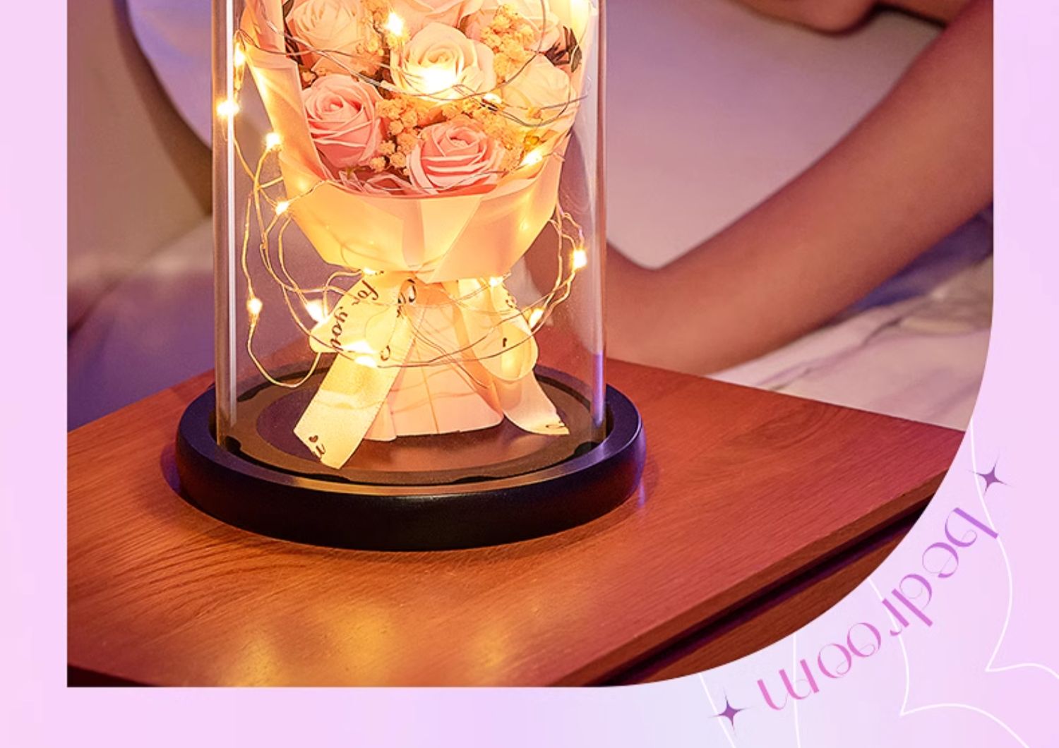 Glass Cover Eternal Flower [Pink-Thanksgiving Maternal Love] Exquisite Glass Cover + Lamp String + Handmade Packaging + Gift BagVariant sold out or unavailable