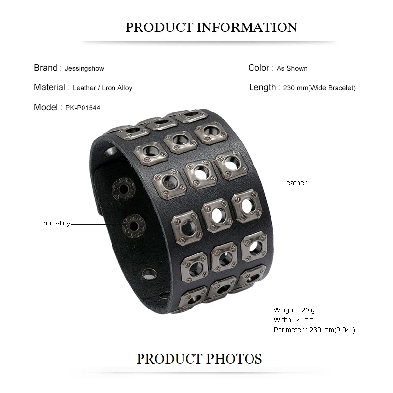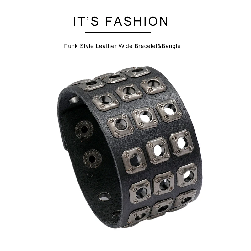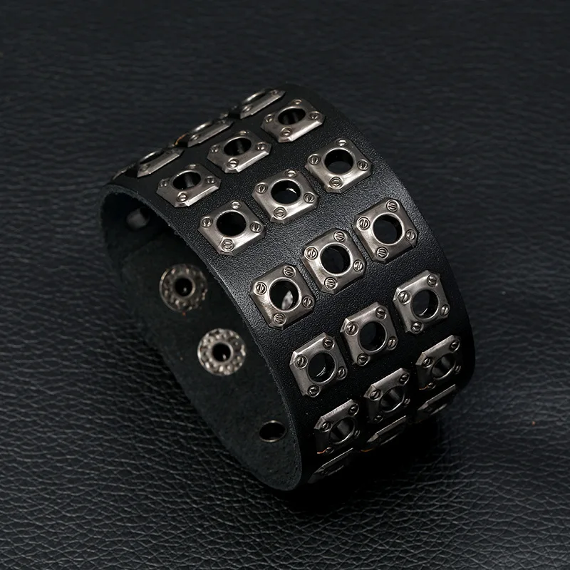 Punk-Rock Design: Wide cuff with metal rivets for a rebellious statement look