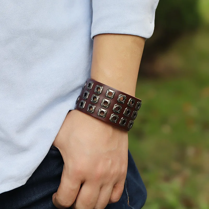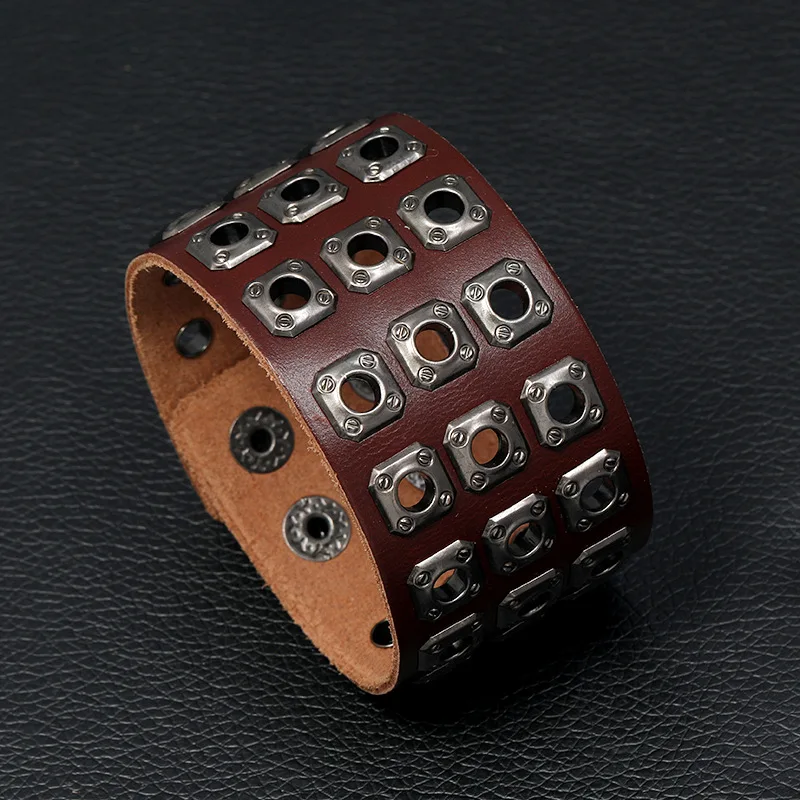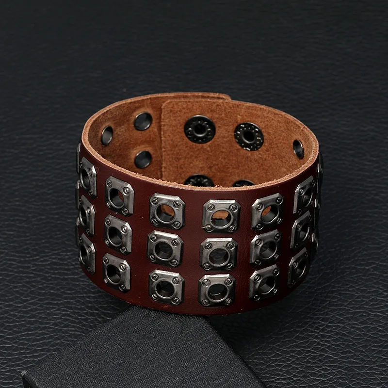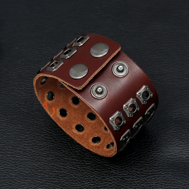 Retro Rivet Leather Bracelet – Bold Rock Punk Style for Men