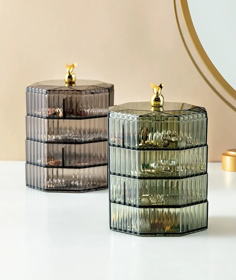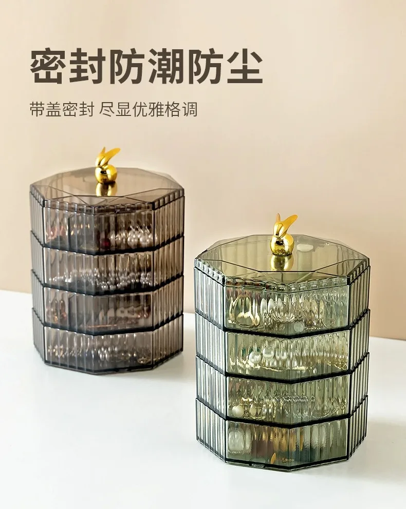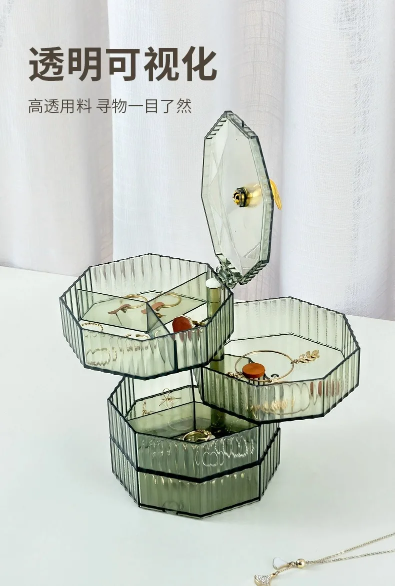 Rotating Jewelry Storage Box Makeup Storage Rack Bracelet Earring with Cover