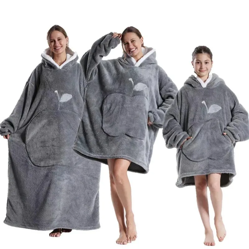 Stay warm and cozy all winter long with the Super Long Flannel Blanket Apple with Sleeves! This oversized fleece sweatshirt blanket is perfect for snuggling up on the couch or lounging around the house. With a giant TV blanket design and hooded sleeves, it's the ultimate winter essential for both men and women. Don't miss out on staying stylish and toasty with this new must-have item!