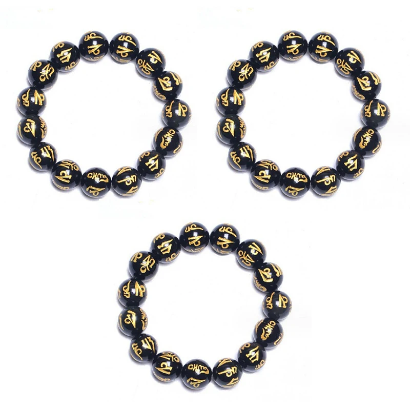 Product Name:10/12/14mm Tibetan Buddhism Six Words Mantra Bracelets For Men Women Black Obsidian Amulet Lucky Bangles Jewelry with Gift Box