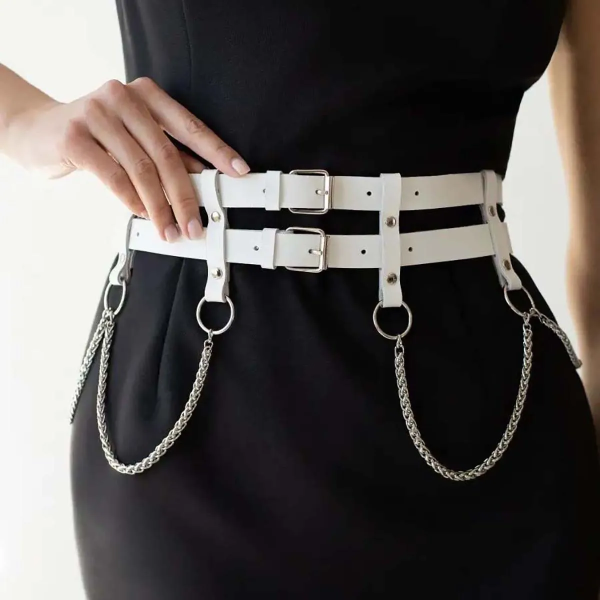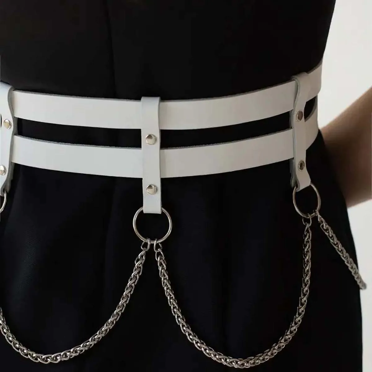 Women Trend Punk Belt Belt With Chain Decoration Fashion Leather Waist Belt Female Street Style Gothic Clothing Accessories